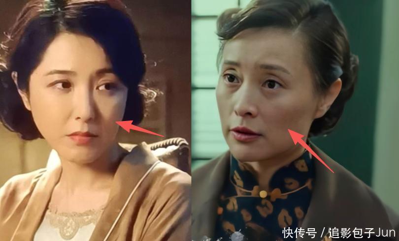剧中她身着素雅旗袍,身段依旧窈窕,面部线条却僵硬得像蜡像。