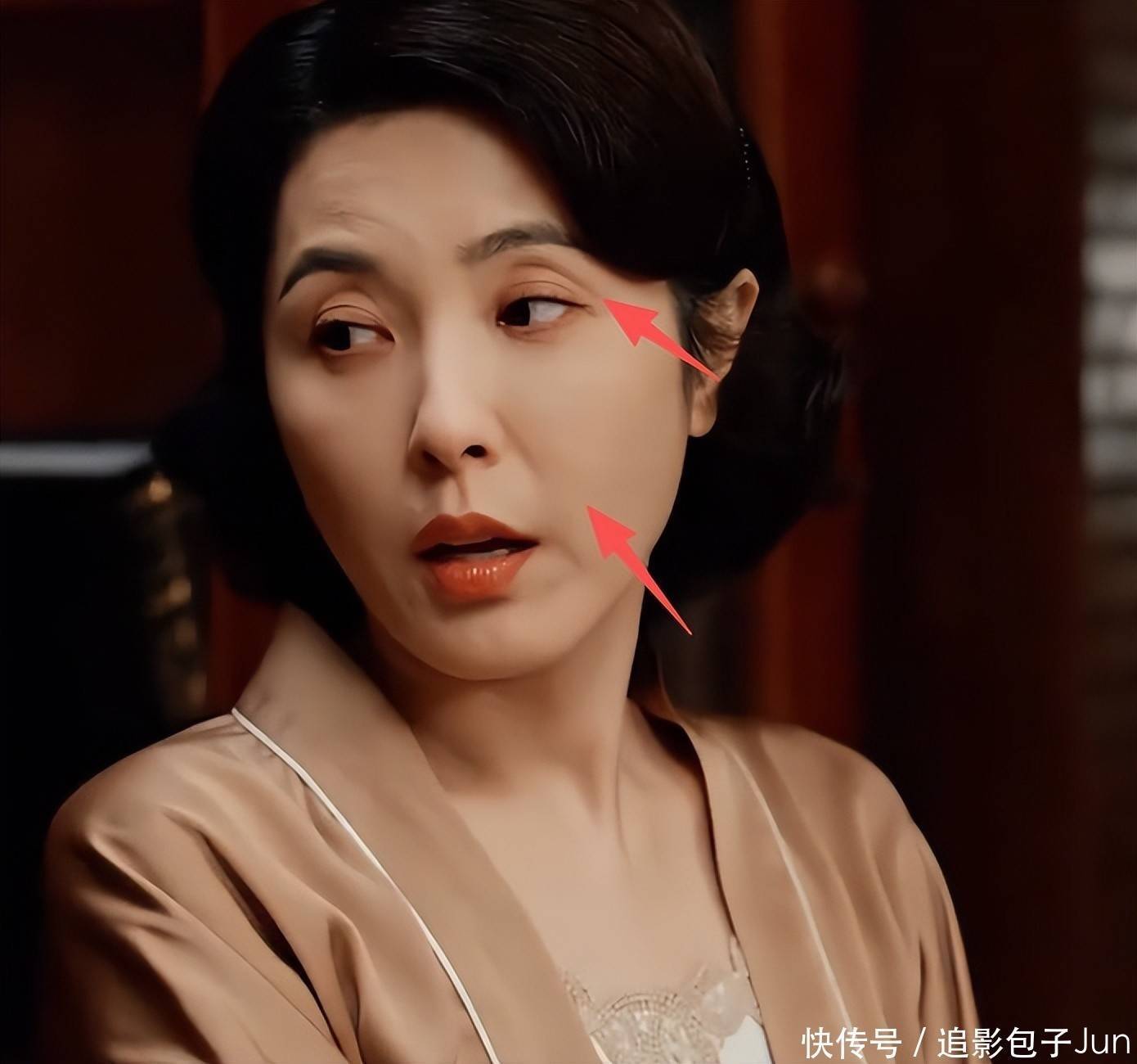 看看那下颌线被玻尿酸填得模糊不清,眼尾拉得紧绷,连做惊讶表情时额头都光滑如镜。
